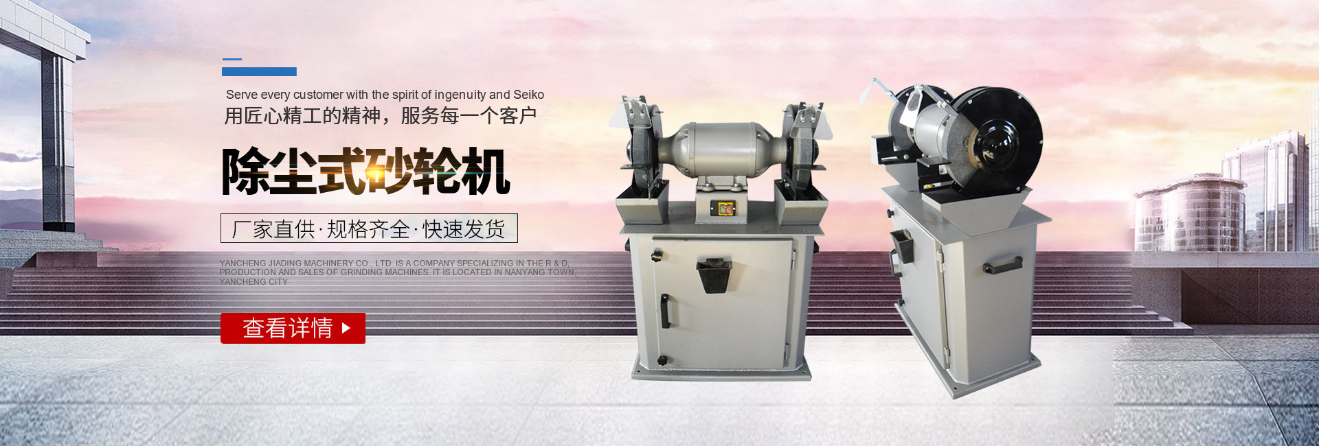 鹽城嘉鼎機(jī)械有限公司是一家專業(yè)從事砂輪機(jī)研發(fā)、生產(chǎn)、銷售為一體的公司,坐落在鹽城市南洋鎮(zhèn)。主要產(chǎn)品有:砂輪機(jī)、砂帶機(jī)等系列。其中砂輪機(jī)有:臺(tái)式、立式、懸掛式、除塵式、它驅(qū)式、防爆式等三十多個(gè)規(guī)格品種,也可定制特殊行業(yè)所需的異型砂輪機(jī)。